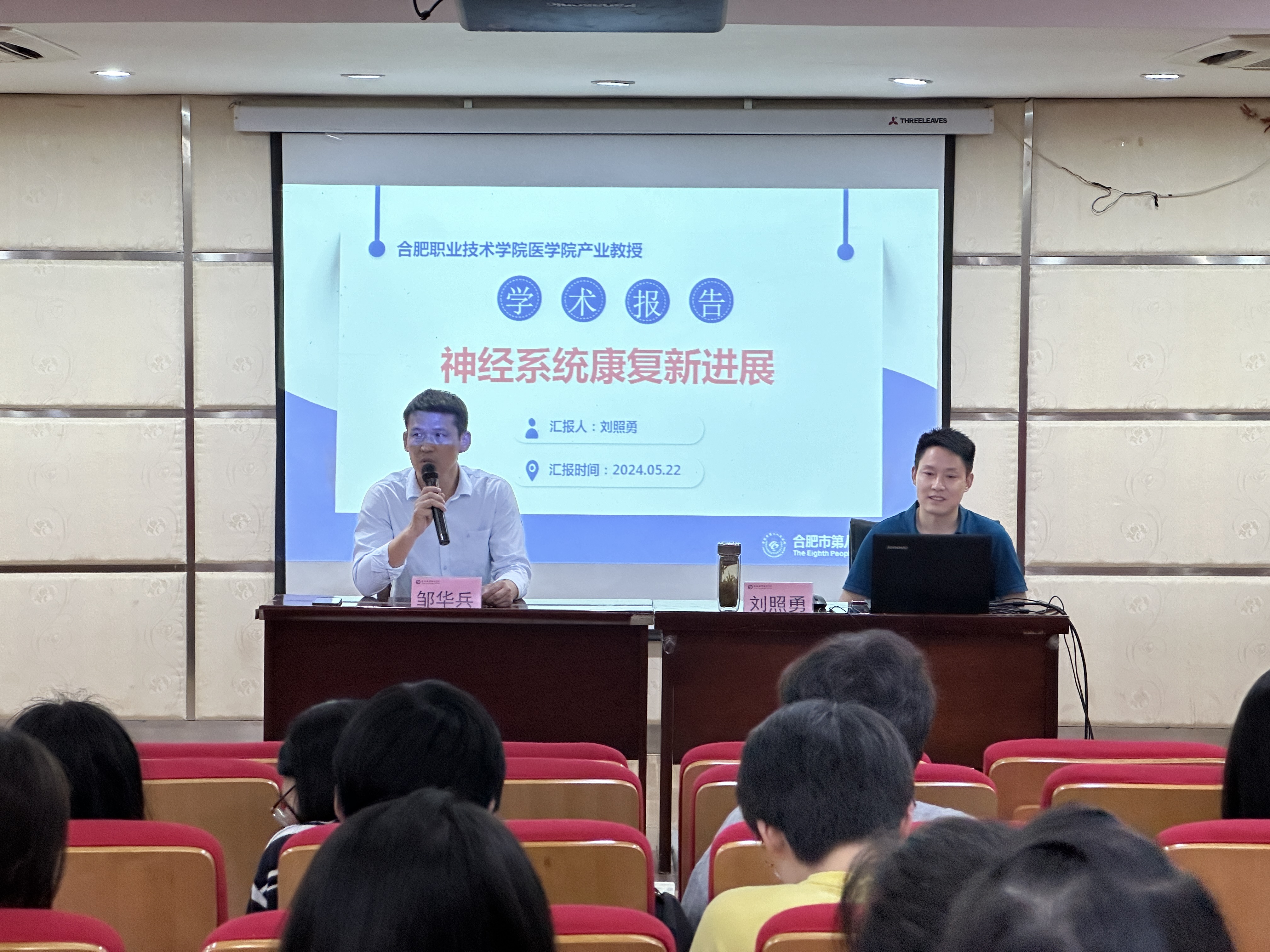 5月22日下午,安徽省职业院校产业教授、sunbet申搏官方网站产业教授、合肥市第八人民医院运动康复科主任刘照勇受邀为我院学生讲授了一场关于神经系统疾病临床康复最新治疗进展的学术讲座。讲座由sunbet申搏官方网站副书记邹华兵(主持工作)主持,2022级康复治疗技术专业全体学生及康复与老服教研室全体教师参加。