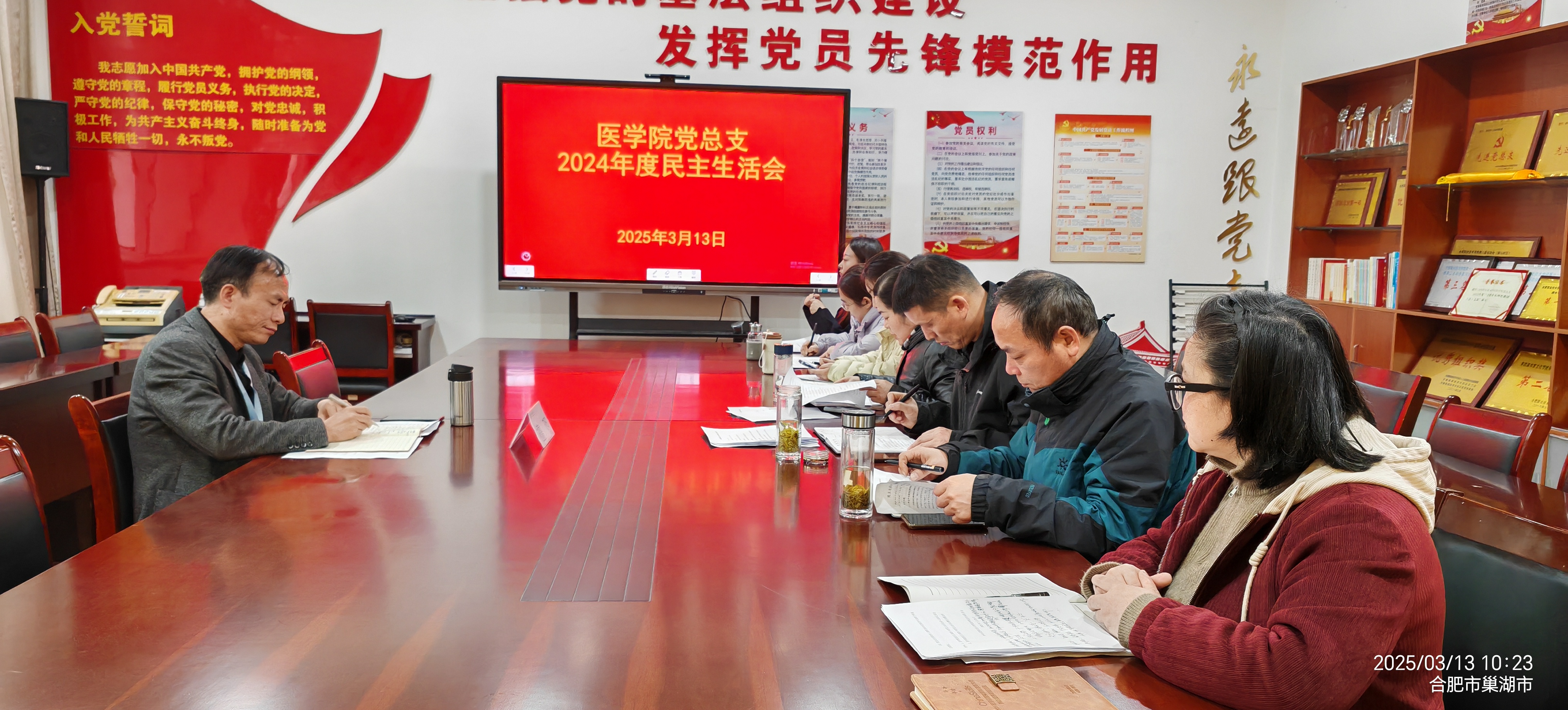 会议首先通报了上一年度民主生活会整改落实情况以及本次会议准备情况。随后,邹华兵代表党总支班子作对照检查发言,按照“四个带头”“三个摆进去”要求,查摆突出问题,剖析反面典型案例,找准思想根源,提出整改措施。随后,总支班子成员逐一发言,严肃开展批评和自我批评,坚持刀刃向内,交流思想,检视问题,明确方向,达到了锻炼党性、凝聚共识、促进工作的目的。