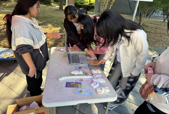 活动现场,有趣的游戏和精美的小礼品让往来学子纷纷驻足,他们有序排队,参与游戏。本次活动共吸引了九十余名同学积极参与,现场气氛热烈而有序,充满了欢声笑语。对句声、讨论声、成功后的欢呼声、领取奖品时的欣喜道谢声,交织成一曲独特的秋日交响乐。职业礼仪社的成员们穿梭其间,热情引导,耐心核对答案,并适时地为卡壳的同学提供一两个关键字作为“线索”,他们的微笑服务本身,就是社团“礼仪”精神的最佳体现。