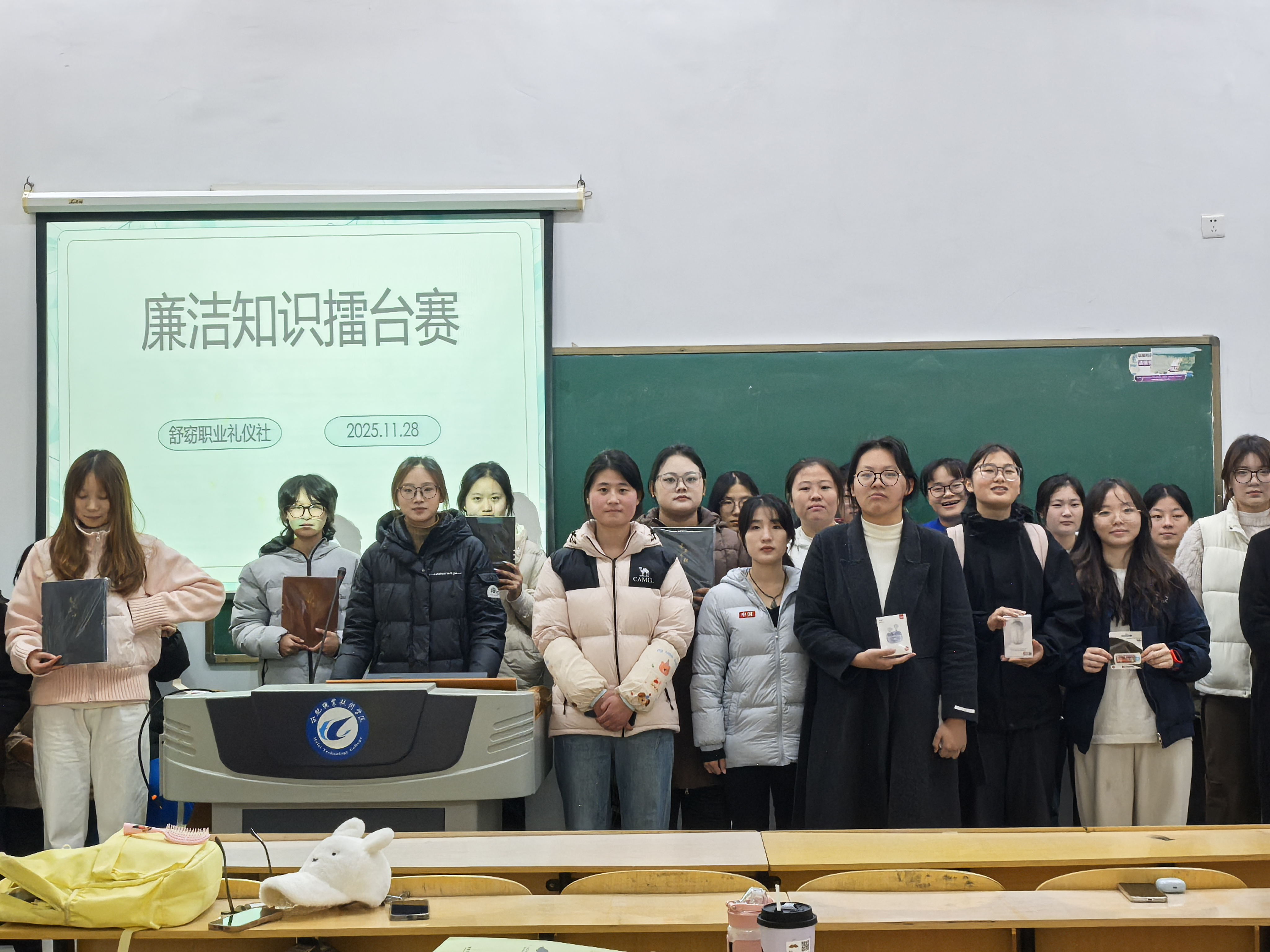 舒窈职业礼仪社用行动助力学校营造“学廉、知廉、倡廉”的良好校园氛围,本次廉洁知识擂台赛巧妙地将“学、思、竞、悟”融为一体,以赛促学,以学促廉,如同春风化雨,在轻松愉快的氛围中,将“廉洁”的种子深深植根于青年学子的心田。(供稿:24护理6班韩逸 初审:孙双美 审核:梁春艳)