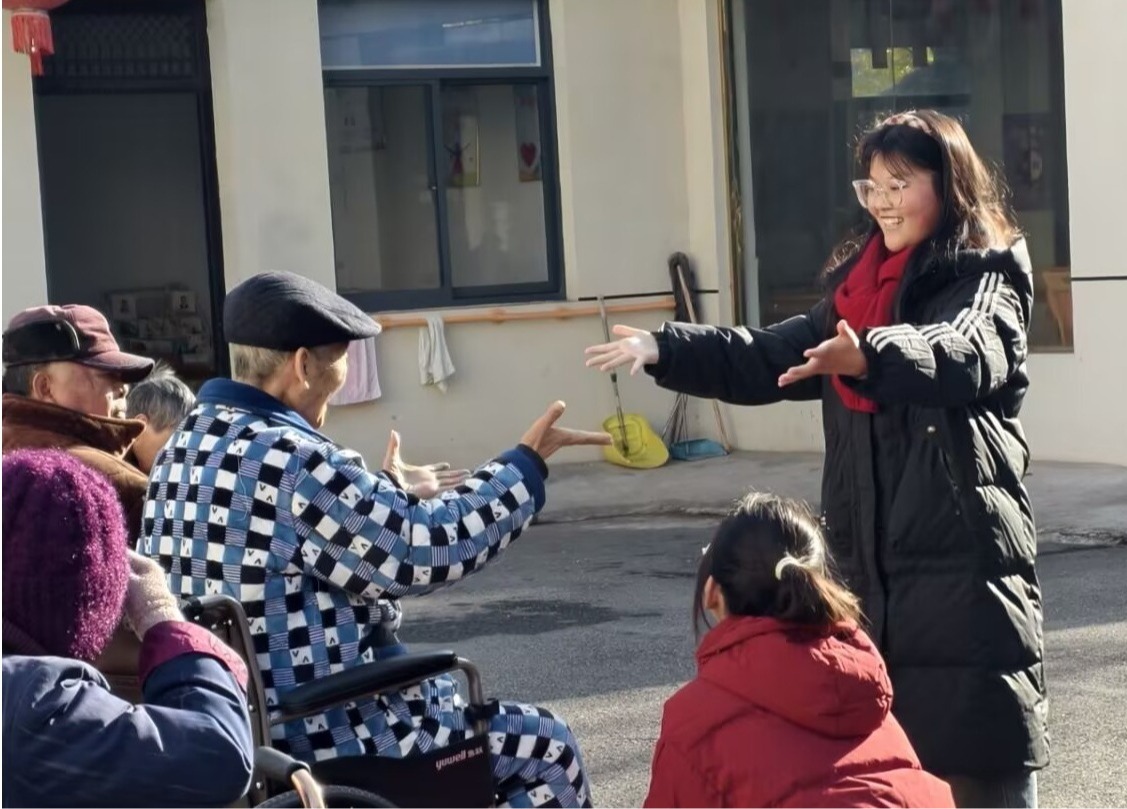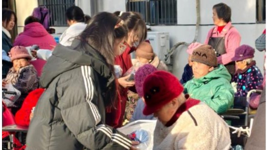 冬日暖阳照,温情暖人心。2025年12月14日,sunbet申搏官方网站第四党支部周璇老师带领智慧健康养老服务与管理专业张瑶等8位学生,走进洗耳池社区长者之家养老院,开展一场充满温情的志愿献爱心活动,为老人们送去冬日的关怀与欢乐。