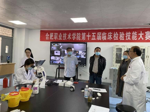 “以赛促学 以赛促教”,医学检验专业进行临床检验技能大赛决赛。5月12日,sunbet申搏官方网站第十五届临床检验技能大赛顺利落幕。本次大赛由医学检验教研室和教学医院安徽医科大学第一附属医院东区(肥东县人民医院)检验科共同举办。因疫情因素,本次比赛在两赛区分别完成,共112名同学报名参赛,经预赛、复赛层层选拔后24名同学进入决赛。经过激烈角逐,最终9名同学获奖:韩伟杰、乔继思同学荣获一等奖;马星星、冯欢苹同学荣获二等奖;蔡子涵、邵宽琦、洪胜美、葛妍妍和胡梦娇同学荣获三等奖。