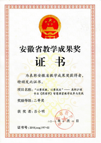 “想给学生一杯水,老师要有一桶水”,教师只有不断持续学习,不断充电,才能培育出高素质技能型人才,2017年他在合肥市八院进修实践6个月,学习了大量临床新知识,取得了优异的成绩,并且和儿科医生一起联合申报了科研项目,于2020年获得“中级双师型”教师证书。