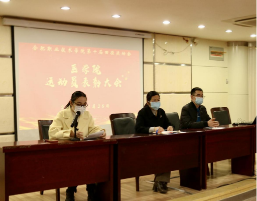 会议伊始,由孔磊老师宣读表彰决定,现场举行了颁奖仪式,授予左川等2名同学“突出贡献奖”的称号,授予沈希佳等11名同学“最佳运动员”称号,授予王佳等7名同学“最佳服务奖”,22护理2班等多个班集体“班级精神文明奖”称号,并为获奖同学和班级颁发了荣誉证书。