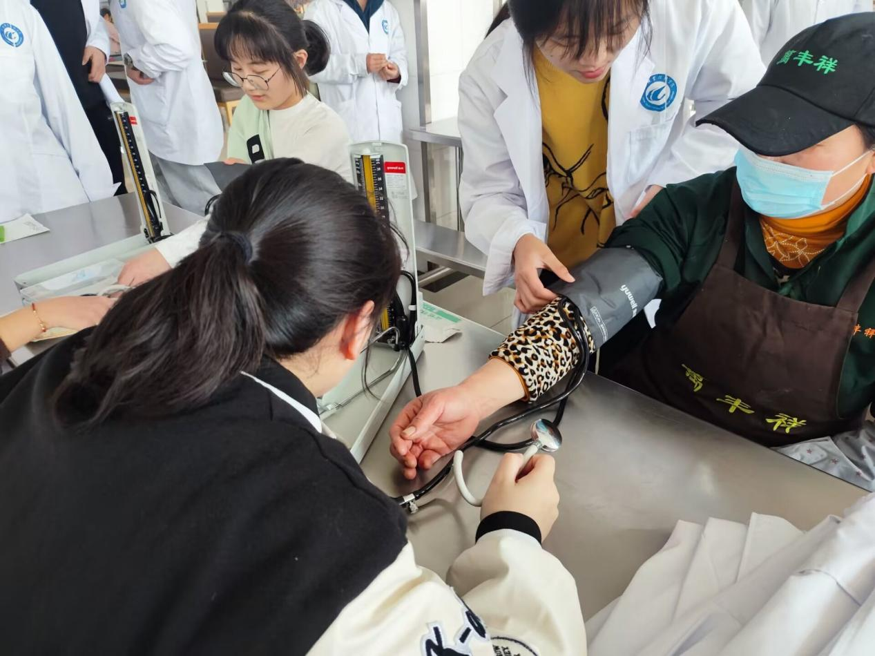 为弘扬志愿服务精神,唤起人们对身体疾病的防范意识,学而社的同学们在学校一食堂二楼为学校教职工、同学们测量血压。在活动过程中,社员们运用熟练的操作技能为每一位前来测量的职工们认真测量,记录相关数据,悉心解释血压情况并结合饮食情况给出相关建议。同时鼓励大家健康饮食,养成良好的作息规律,以便有效控制血压,保持身体健康。