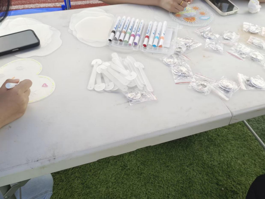 当天下午,活动组织者提前精心搭建好社团展台,准备好参与活动所需的物品、社团印章等,活动正式开始。活动吸引了现场众多同学驻足观望,在向现场志愿者详细了解活动规则后,踊跃报名参加。有的同学在扇子上画出了自己喜欢的玩偶,有的同学在扇子画出小太阳表达出自己积极乐观的心态。没一会,现场准备的20把扇子已经被同学们制作完成,参与者纷纷拿着自己亲手制作的纸扇现场展示、拍照留念。