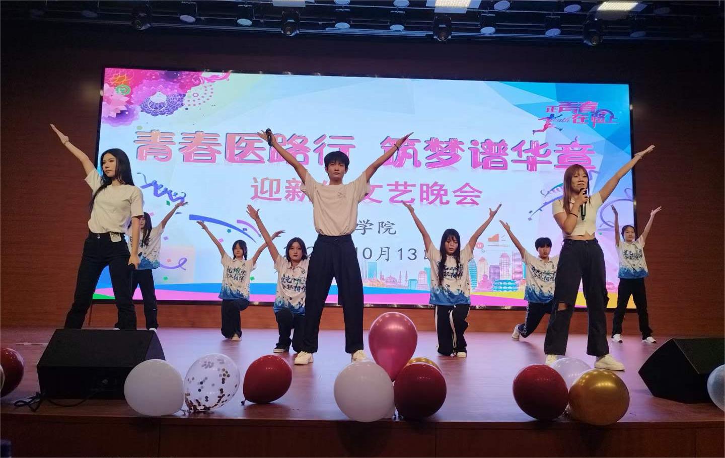 金秋时节,新程再启。为展现青春洋溢的校园文化氛围、彰显师生积极向上的精神风貌,10月13日晚,sunbet申搏官方网站在鼓山校区大学生活动中心举办以“青春医路行,筑梦谱华章”为主题的2023年迎新生文艺晚会,sunbet申搏官方网站党总支副书记(主持工作)邹华兵、党总支副书记梁春艳、各班级辅导员和新老生共五百余人现场观看了演出。