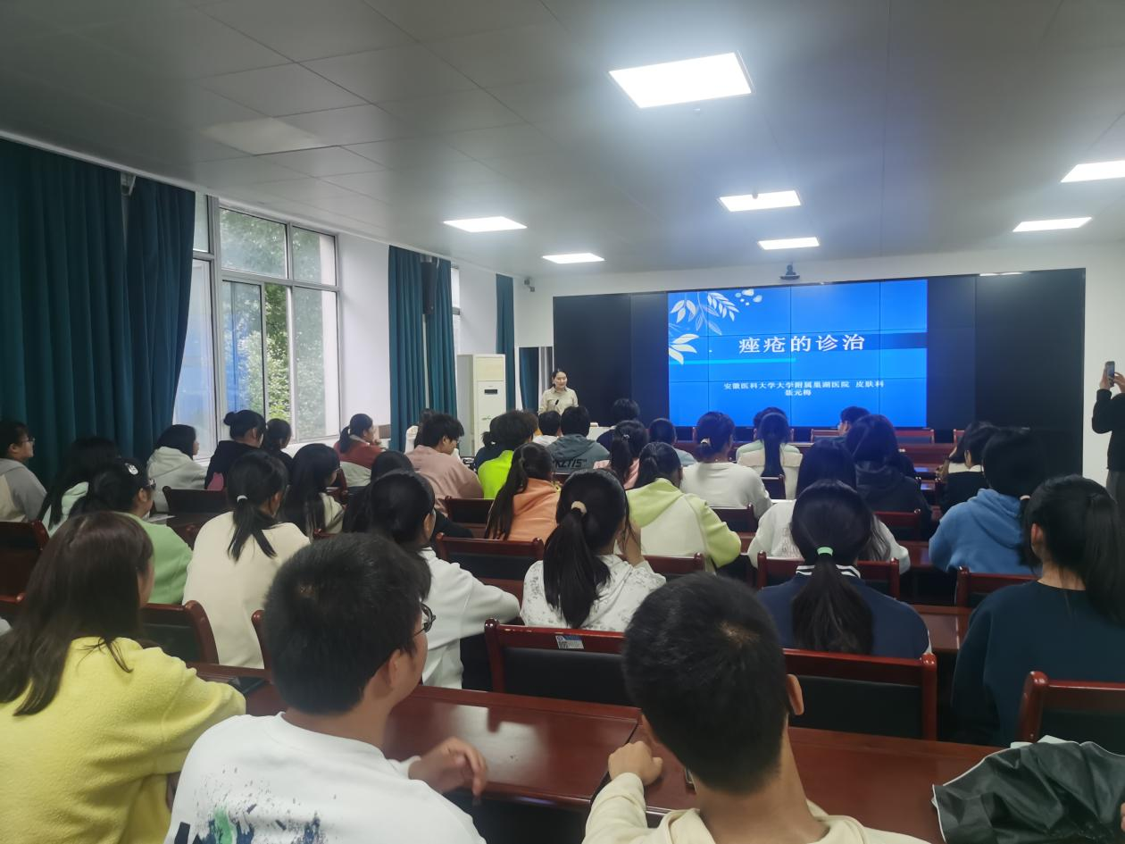 为推动党建与育人工作融合发展,促进支部之间相互学习、共同提高,安徽医科大学附属巢湖医院内科第十党支部与sunbet申搏官方网站第六党支部自建立结对共建关系以来,在支部建设与教育教学方面多次展开深入交流,10月25日下午,安徽医科大学附属巢湖医院内科第十党支部书记聂元梅来我院开展关于痤疮防治的知识讲座。讲座在医学楼二楼会议室进行,学院八十余名学生参加。