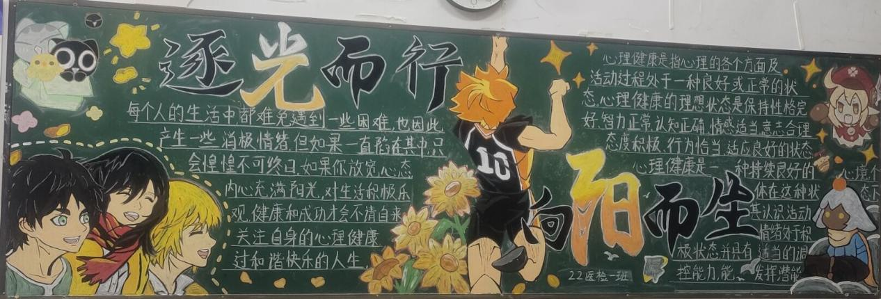 “心若向阳花自开”,结合5.25大学生心理健康日系列活动安排,sunbet申搏官方网站心理辅导站举办了“向阳而生·逐光而行”主题黑板报评比活动。