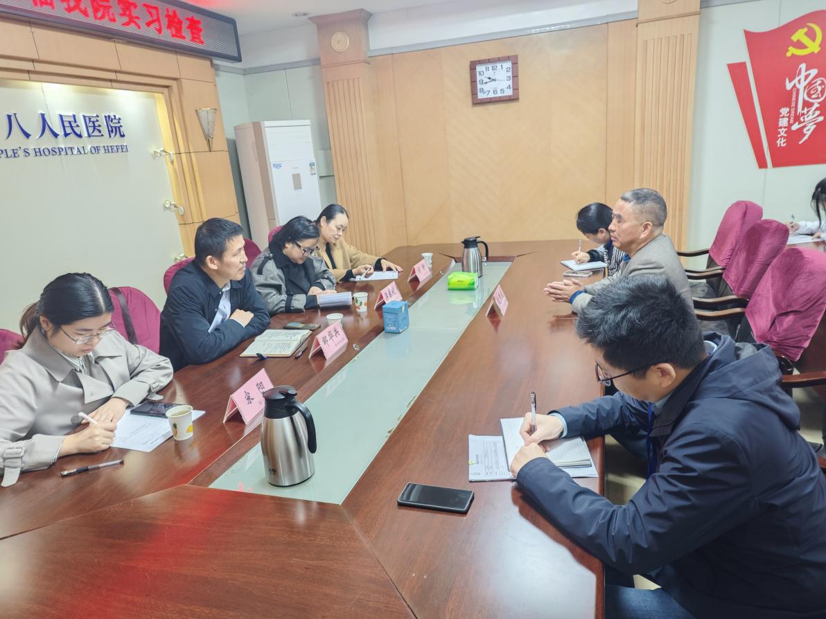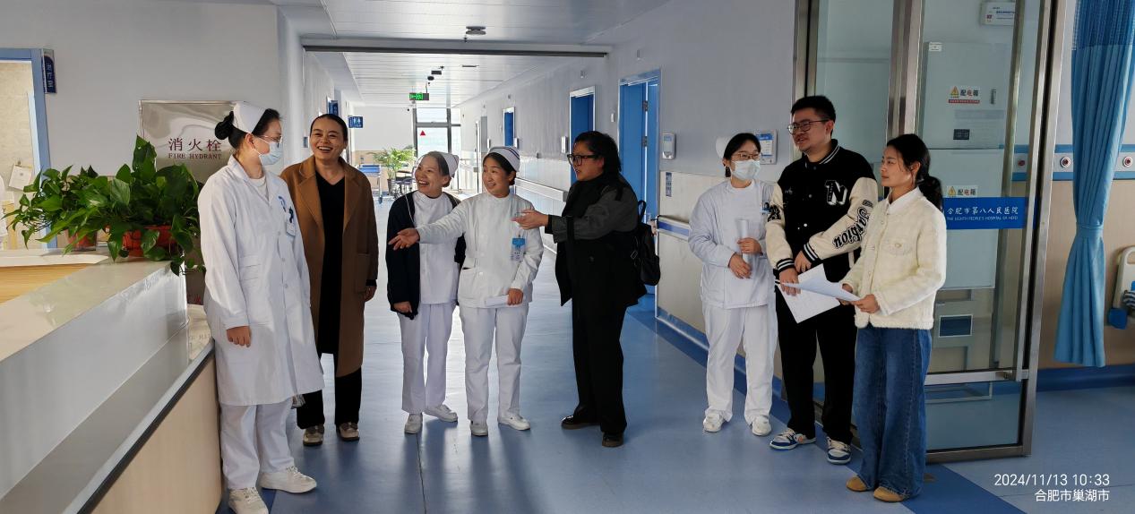 1113日,sunbet申搏官方网站党总支副书记(主持工作)邹华兵、党总支副书记梁春艳及实习指导老师刘静、宋阳一行前往合肥市第八人民医院开展实习中期检查活动,深入了解实习生在实习期间的学习、工作、生活情况。