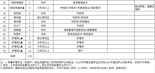 招聘人数及岗位需求详见《太和县中医院2021年公开招聘岗位计划表》(附件)。