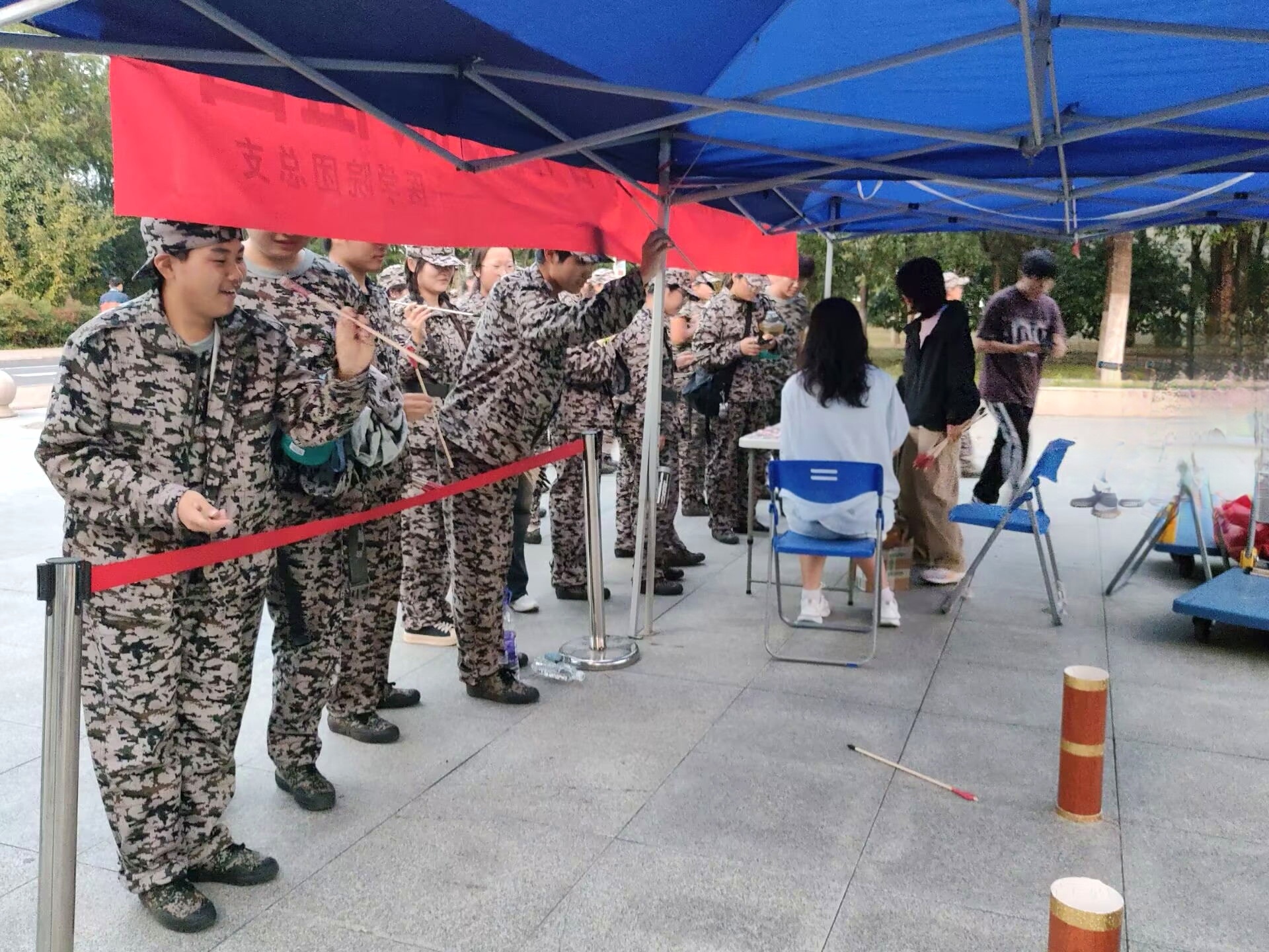 搭帐篷、拉横幅、摆道具,活动开始前,相关社团早早就布置好活动场地和用品。待到活动时间临近,越来越多的同学集中过来,准备在自己感兴趣的项目中一展身手。傍晚时分,鼓山校区一食堂前广场充满了同学们的欢声笑语。