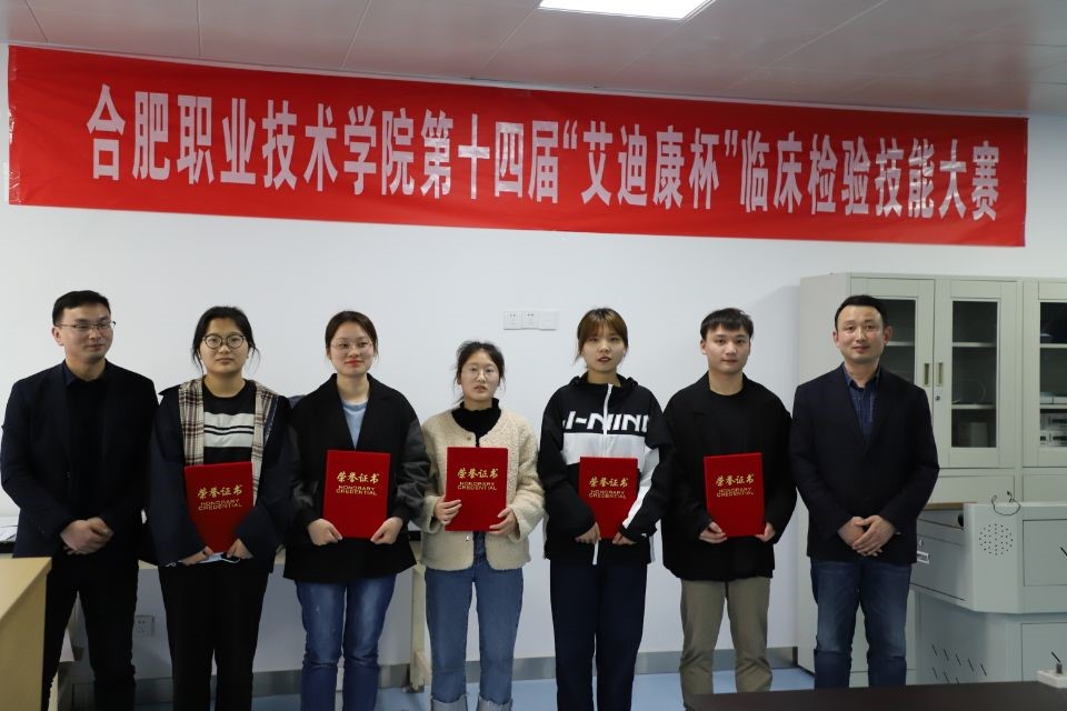 4月10日,sunbet申搏官方网站第十四届“艾迪康杯”临床检验技能大赛决赛在医学检验“教学做训赛”一体化实验室顺利举行,共计24名同学参加本次决赛。本次大赛特邀合肥艾迪康临床检验所有限公司许庆军、石滢,安徽医科大学第一附属医院东区(肥东县人民医院)费伟伦、王芳、何恒等行业专家与sunbet申搏官方网站副院长蒋斌、医学检验教研室专任教师共同担任评委。经过激烈角逐,最终10名同学获奖:汪佳文、李心悦同学荣获一等奖;汪玉杰、李娜等同学荣获二等奖;王玲巧、岳俊兰、李诺、徐遥、王君和黄忻月同学荣获三等奖。