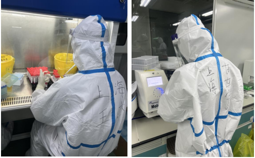 19级医检5班王洁、19检验3班甘世宇在上海参加核酸检测工作