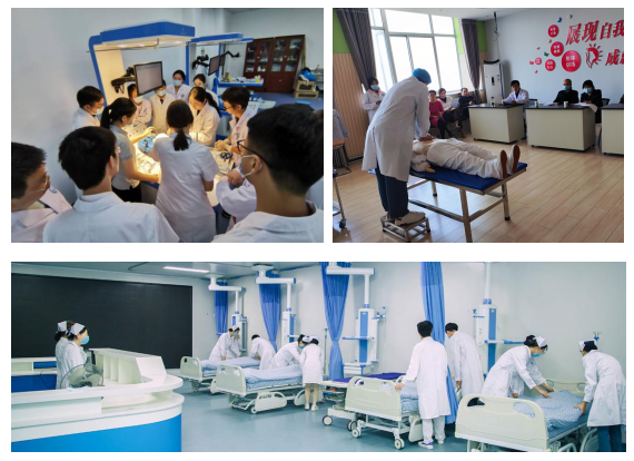 医院主体教学育人:第二学年专业课教学和专业实践见习、第三学年毕业实习均在医院完成。广泛采用教、学、做一体化、真实工作场景的教学模式开展教学;充分利用医院的各种教育载体,如严谨的交接班、细致的查房、认真的带教、精湛的技术、精益求精的精神、同理心的优质服务等,培育学生的“救死扶伤、敬佑生命、爱岗敬业、恪尽职守、医乃仁术、大医精诚”等职业精神。