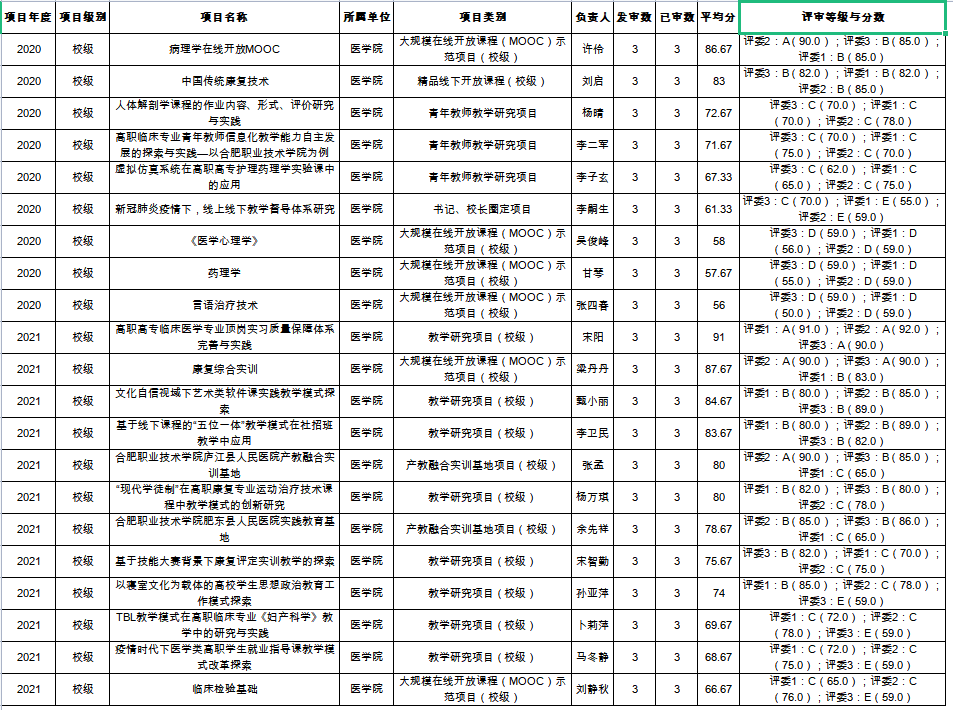 本次评审共计21个项目,其中中期检查9项,验收项目5项,已延期1年本次结题项目4项。通过专家评审,其中3个项目申请延期,其余项目评分均在合格及以上,最终评审结果见下表。