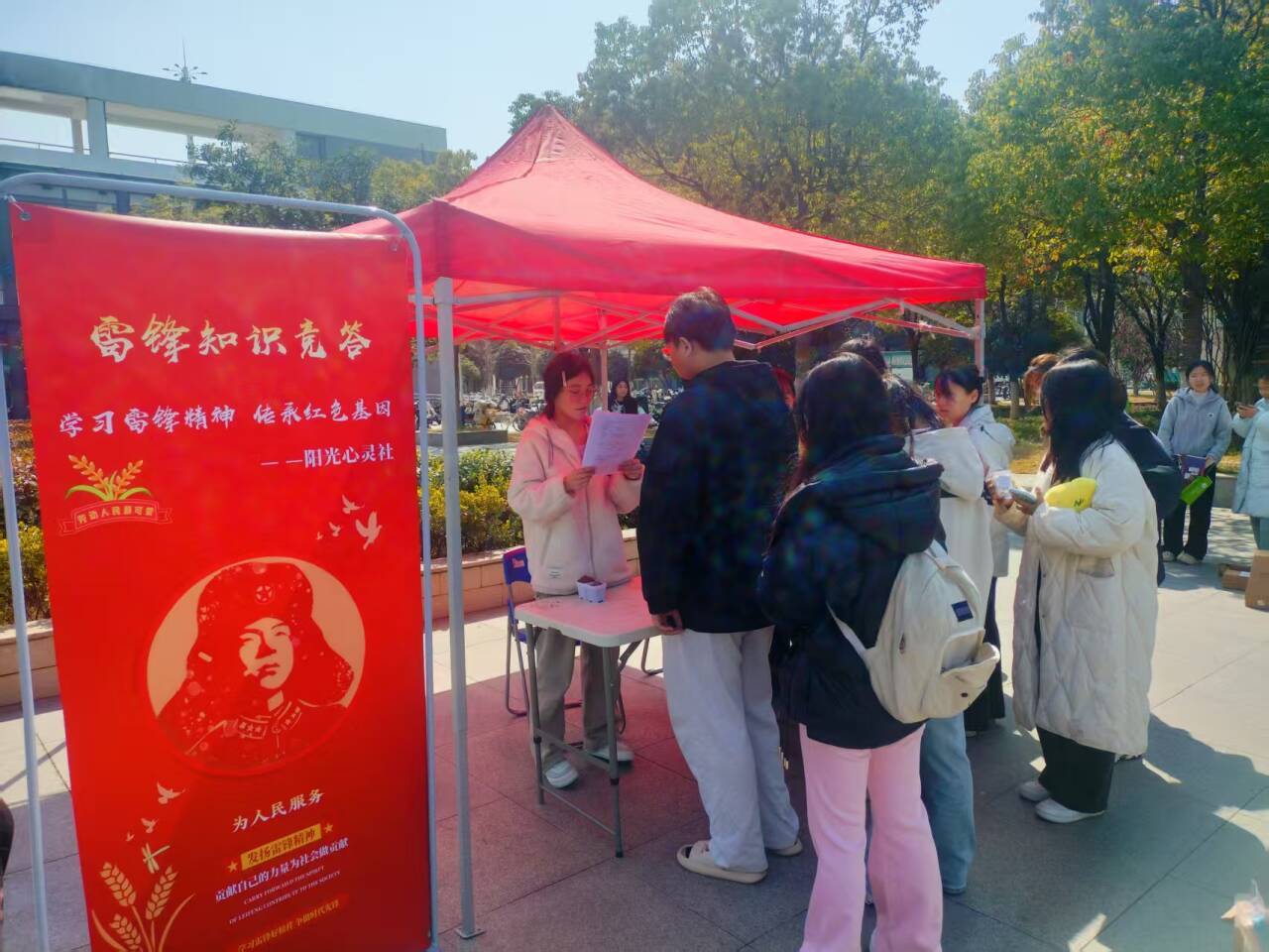 为弘扬雷锋精神,深化社会主义核心价值观教育,sunbet申搏官方网站心理辅导站携手阳光心灵社于3月19日在鼓山校区第一食堂门口成功举办“弘扬雷锋精神,传承红色思想”主题知识竞答活动。活动通过趣味答题的形式,吸引了近200名师生参与,现场氛围热烈,展现了新时代青年对雷锋精神的深刻理解与实践热情。
