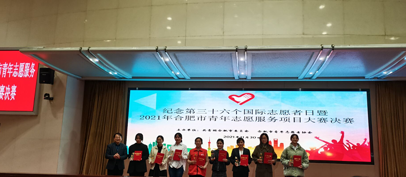 比赛过程中,王菲同学从容不迫的讲演以及流利的答辩赢得了现场观众的阵阵掌声,参赛作品《合肥地区居民急救知识现状调查及推广普及研究》以“敬畏生命,关爱健康,服务社会”为主题,从医学出发,题材新颖,创新性较强,得到了评委们的一致好评。经过激烈角逐,该项目最终以86.25的高分赢得了合肥市青年志愿者服务大赛二等奖。
