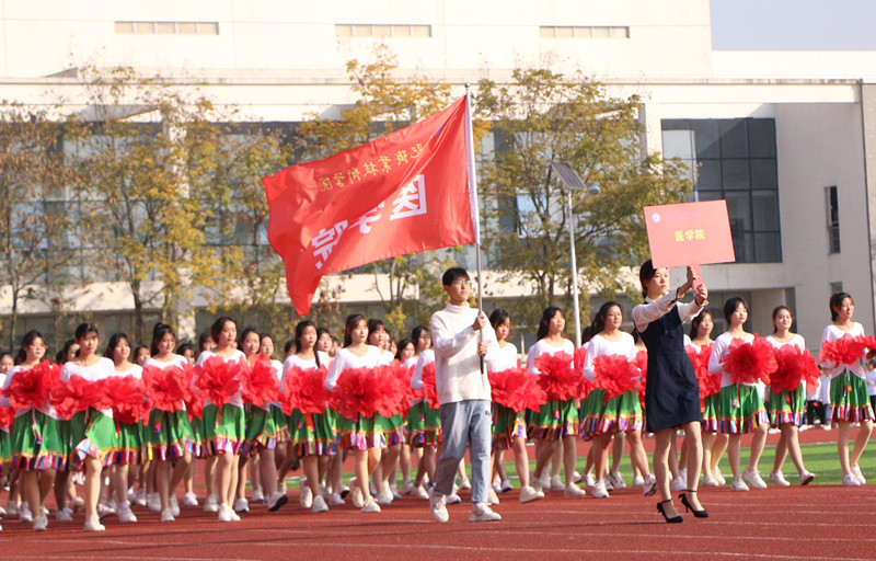 献礼建党百年,方阵表演精彩纷呈。伴随着激昂的音乐,由81名sunbet申搏官方网站学生组成的入场方阵青春洋溢,气势恢宏,成为运动场上一道靓丽的风景线。她们手持红色花簇、面带微笑,展现着合职青年的青春活力与热情;她们带来了献礼建党百年表演,展现着新时代大学生的精神面貌;她们的花环方阵摆出了党旗、sunbet申搏官方网站的首字母,用色彩与创意展现着sunbet申搏官方网站学子肆意飞扬的青春和闪亮的风采。