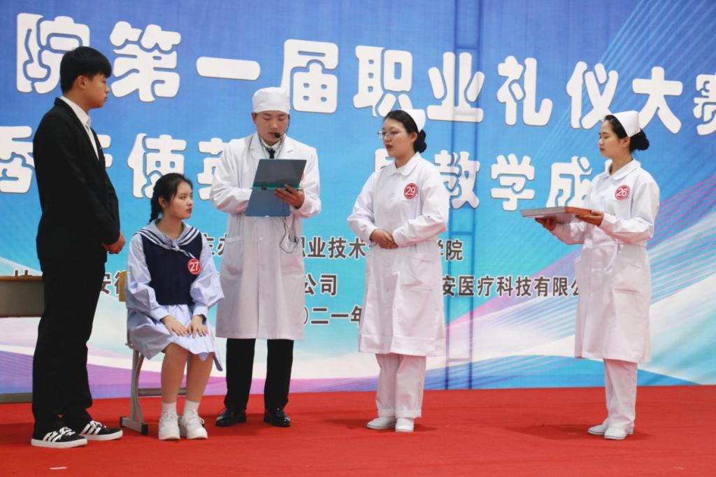 落落大方展风采。本次比赛根据专业情况设置情景,大赛覆盖面广组织有序学生参与度高,参赛选手准备充分,赛出水平赛出风格。选手们通过站姿、走姿、坐姿、蹲姿(拾物)、持病历夹、端盘姿态、交流沟通等自由组合成案例场景进行职业礼仪风采展示选手们充分展示日常工作中规范优美的礼仪举止,赢得了在场观众的好评