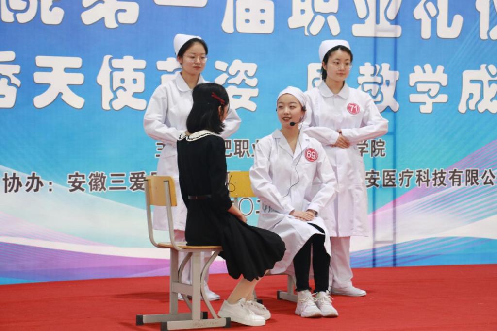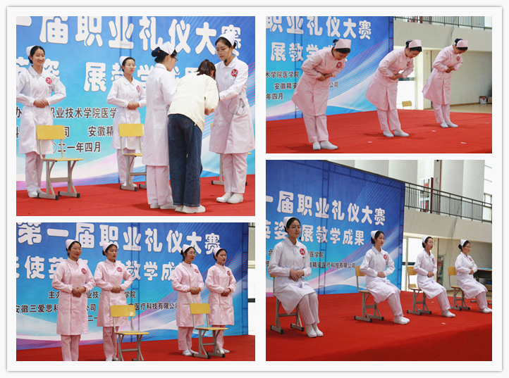 为了落实“五育并举”,推进“三全育人”工作,增强sunbet申搏官方网站学生专业素养和就业自信,展现学子的职业精神风貌和礼仪风采,2021年4月21日下午在学校体育馆二楼举办sunbet申搏官方网站职业礼仪大赛,安徽医科大学附属巢湖医院副院长、巢湖市护理学会理事长孙会芹,sunbet申搏官方网站校党委委员、鼓山校区管委会主任周泽山,马克思主义学院院长靳玉琼、sunbet申搏官方网站党政班子和相关专业教师应邀出席了本次比赛,并担任评委老师。
