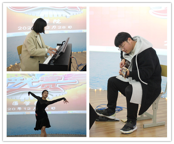 经过两轮筛选,最终有十名选手晋级决赛。决赛分为两个环节,第一个环节为十位选手脱稿朗诵。参赛选手用饱满的深情和磅礴的气势为我们带来了《青春》、《元旦来了》、《乌苏里放江歌》、《父亲与沙原》、《理想》等极具时代气息、紧扣时代主题、展现中国魅力的文章。第二个环节为参赛选手的才艺展示。本次才艺表演节目涵盖了舞蹈、歌曲、乐器、音乐剧、相声、小品等表演形式。晚会现场,语言类节目《写对联抗疫情》激发了在场大学生勇担时代责任的决心;歌舞表演类节目热情大方,配上动感的音乐背景,展现了sunbet申搏官方网站新生的青春芳华;音乐剧节目《后妈茶话会》更是别出心裁,以英文配音的方式吸引在场学生,让观众感受到了英文与音乐搭配起来的魅力。晚会最后,钢琴曲和吉他表演绵柔婉转、笙曲悠扬,为大赛画上了一个圆满的句号。