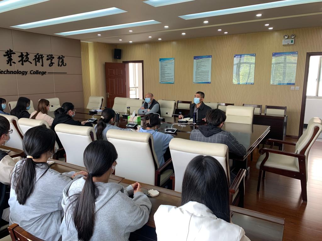 为更好了解学生在疫情防控期间的心理动态和校园生活,切实解决学生在校生活中的问题,校领导积极深入二级学院,加强与学院师生的交流。4月5日副校长周晓隆召开sunbet申搏官方网站学生思想动态座谈会,会议由sunbet申搏官方网站党总支书记张明主持,sunbet申搏官方网站学管办主任于治国出席会议,sunbet申搏官方网站各专业各年级部分学生参加座谈会。
