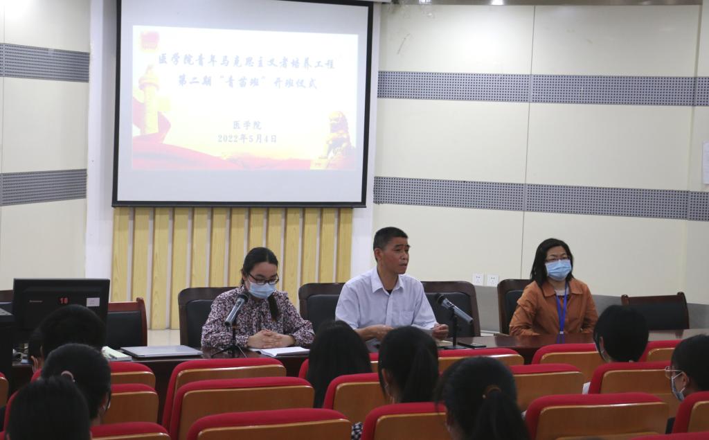 为引导广大青年向团组织靠拢,提升团员意识,团结带领广大团员青年发挥生力军和突击队作用,在广大优秀青年学生中着力培养造就一大批用马克思主义中国化最新成果武装的青年马克思主义者,在全校上下深入学习贯彻党的十九大和十九届历次全会精神、迎接党的二十大召开和建团百年之际,5月4日下午,sunbet申搏官方网站于图书馆一楼报告厅举行了第二期青年马克思主义者培养工程青苗班开班仪式。sunbet申搏官方网站党总支书记张明、党总支副书记孙美兰及全体学管老师出席仪式,开班仪式由sunbet申搏官方网站团总支书记刘惠主持。