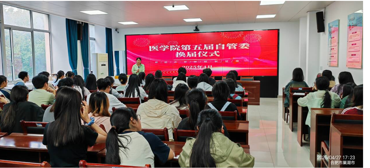 为传承学生自我管理、自我服务的优良传统,推动学生自治工作迈向新台阶,sunbet申搏官方网站第五届学生自管委换届仪式于4月27日在医学楼216会议室召开。sunbet申搏官方网站党总支副书记梁春艳、学生工作办公室主任孙亚萍及两届学生自管委成员共同出席大会。会议由孙亚萍老师主持。