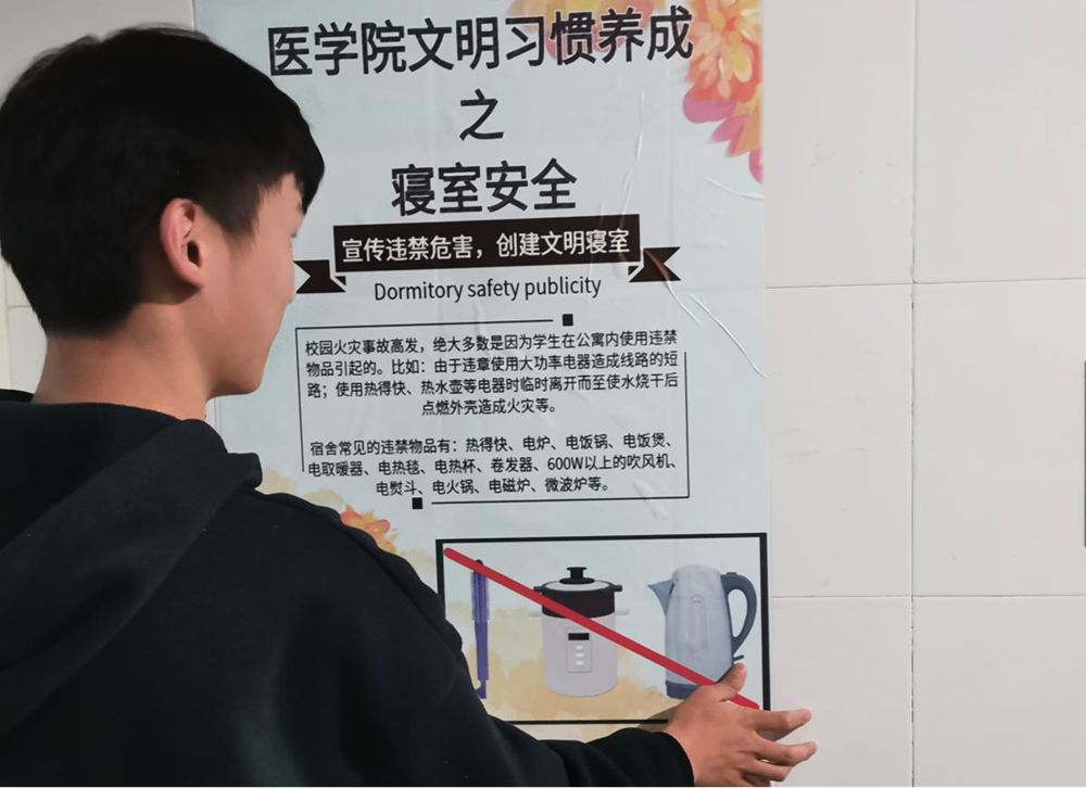 为认真贯彻落实学校有关部署和要求,强调学校学生寝室的相关规章制度,宣传寝室违禁物品的危害,加强学生对于违禁物品的认识及远离违禁物品的自觉性。2020年11月13日晚,sunbet申搏官方网站自管委于各栋学生宿舍及D栋教学楼开展寝室安全海报宣传活动。