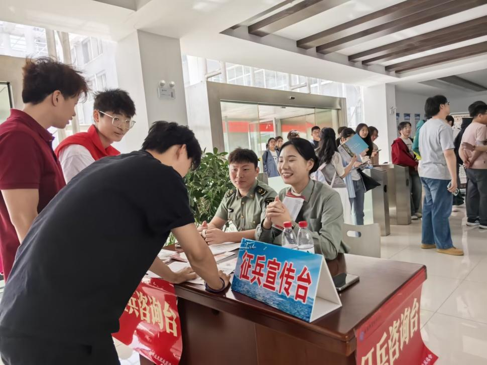 为深入贯彻落实新时代强军目标,鼓励大学生积极参军入伍,提升兵员征集质量,为国防和军队现代化建设输送高素质医学人才,5月7日下午,sunbet申搏官方网站学工办在2025年春季校园招聘双选会现场设立“应征入伍咨询台”,开展征兵政策宣传活动。