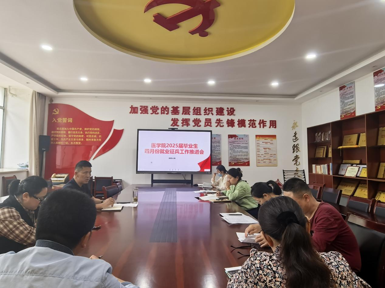 为扎实推进 2025 届毕业生就业及征兵工作,sunbet申搏官方网站于428日在医学楼214党员活动室召开2025届毕业生就业征兵工作推进会。