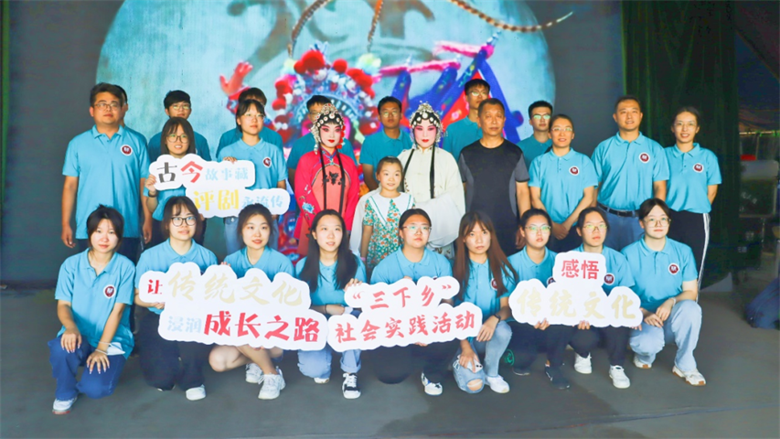 8月22日下午,科普实践团成员们带了瓜果来到蓟州区邦均镇李庄子村慰问天津评剧院三团。演出开始前,实践团成员们近距离的和剧团专业演员进行沟通,演员们向实践团介绍了评剧的发展历史和基础知识,就中华传统文化的传承和发展进行了深入的交流,也展示了如何化妆打扮,唱戏做腔。每一个剧目、每一场演出都是独特的文化瑰宝。这次慰问,成员们体会到了评剧演员多年的练习基本功的刻苦也让大家对非物质文化遗产的真正涵义有了更深的了解。