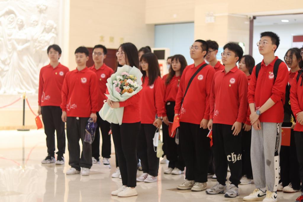 活动现场,同学们身着红色上衣,佩戴团徽,向周恩来、邓颖超同志的雕像献上鲜花,以表崇高敬意。
