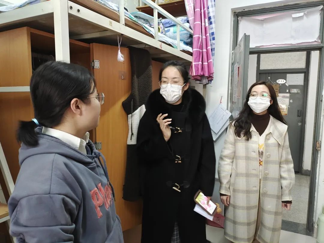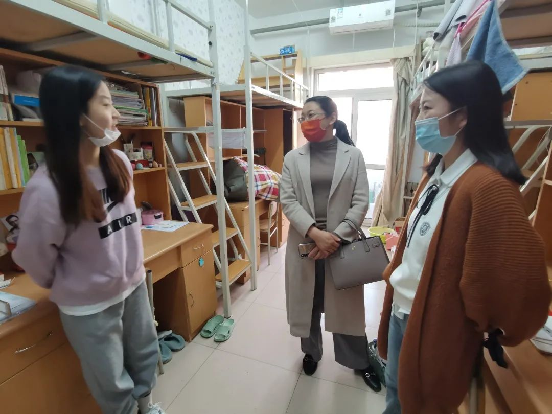 2022年3月7日,开云kaiyun官方网站第一批返校学生陆续回校,学院党委书记张梅老师、党委副书记赵晓艳老师、副院长吴景波老师、副院长王守宇老师以及学工办辅导员和班主任老师走进学生宿舍进行走访。