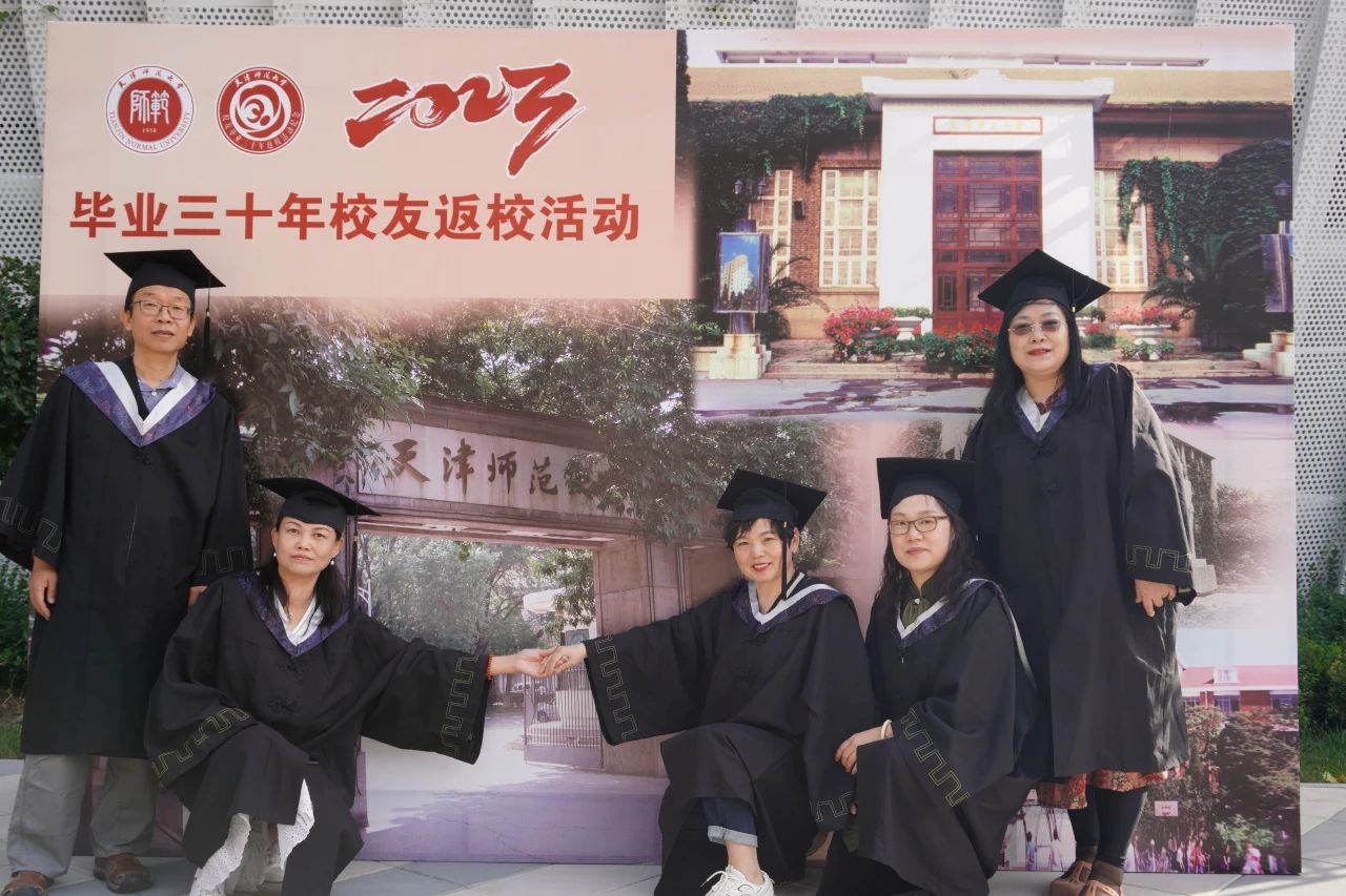 校友们首先到达国际交流中心活动现场,参加纪念大会。大会结束后,校友们重新穿上学士服,再次回到当年毕业的场景。此时此刻,久别的同学就在身旁,欢声笑语,回望青春,一如少年模样。