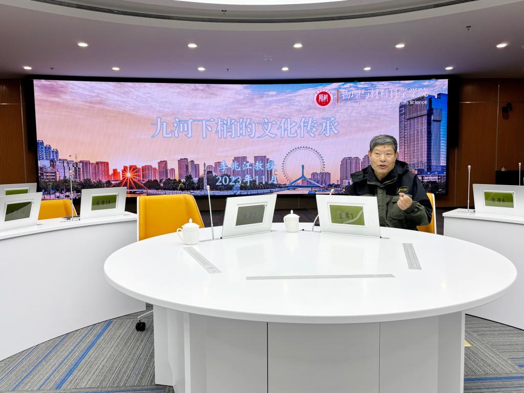 李兆江教授以《九河下梢的文化传承》为题,以大运河的历史经纬为引,结合自身工作经验,带领师生们领略了天津地域文化。他讲道,以老城厢为中心的儒雅文化、以三岔河口为中心沿河地带的运河文化、以五大道为中心的租界文化、以滨海新区的海洋文化为重要组成部分的天津地域文化与天津市襟河枕海和京师门户的地理位置密切相关。他表示,自古以来大运河就是一条重要的文化纽带,两岸孕育了灿烂多姿的非物质文化遗产,随时代发展焕发出勃勃生机。天津的地域文化具有海纳百川的气势,显示出近代天津具有开放性的区域特征。他讲道,大运河贯通着天津市的发展历史,承载着丰富的中华民族的文化基因和天津记忆,是一部生动的蕴藏着天津人民奋斗史的爱国主义教科书。