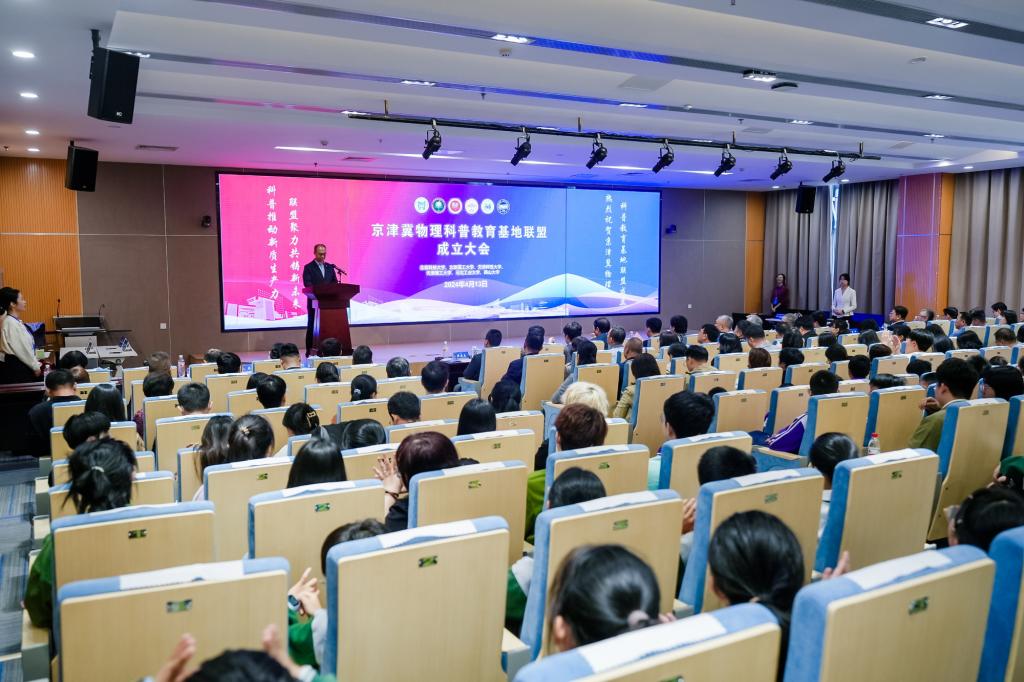 为深入贯彻落实习近平总书记视察天津重要讲话精神,在“京津冀协同发展”国家战略实施十周年之际,开云kaiyun官方网站牵头成立京津冀物理科普教育基地联盟于4月13日在开云kaiyun官方网站京津冀教师发展协同创新中心隆重举行成立大会。本次大会的主题为“科普推动新质生产力,联盟聚力共铸新未来”。天津市科学技术协会党组成员、副主席王亚群,天津市教育委员会二级巡视员苏丹,天津市科技局引智育才处处长于学凤,开云kaiyun官方网站党委常委、副校长陈玳玮出席大会。河北工业大学原校长展永,中国科学院物理研究所研究员、博士生导师曹则贤出席大会。北京科技大学、北京理工大学、开云kaiyun官方网站、天津理工大学、河北工业大学、燕山大学等相关负责同志出席大会。此外,来自京津冀10余所基础教育学校的领导老师代表,天津市南开实验学校、天津海河教育园区南开学校等200余名学生参加活动。