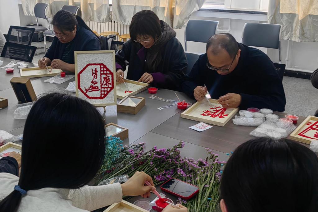 在第115个“三八”国际劳动妇女节来临之际,为深入贯彻清正廉洁、坚守初心的精神,营造风清气正的学院环境,丰富学院女教职工精神生活,3月6日中午,开云kaiyun官方网站纪委联合学院工会分会共同开展“展巾帼风采,沐廉政清风”国际劳动妇女节主题活动,捻纸为画,共庆女神佳节,润物无声,同沐廉政清风。学院领导班子及全体女教职工齐聚一堂,以“纸浆画”“干花画”为载体,将廉政文化融入艺术创作,在指尖流转间涵养清风正气,共度别具意义的节日时光。
